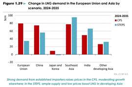 Half of the projected demand increase would come from established importers such as China, Europe, and Japan, while developing economies in South and Southeast Asia also see strong growth. However, high gas prices could constrain uptake in lower-income markets. By 2035, about 20 bcm per year of additional export capacity would be required beyond the projects currently built or under development.